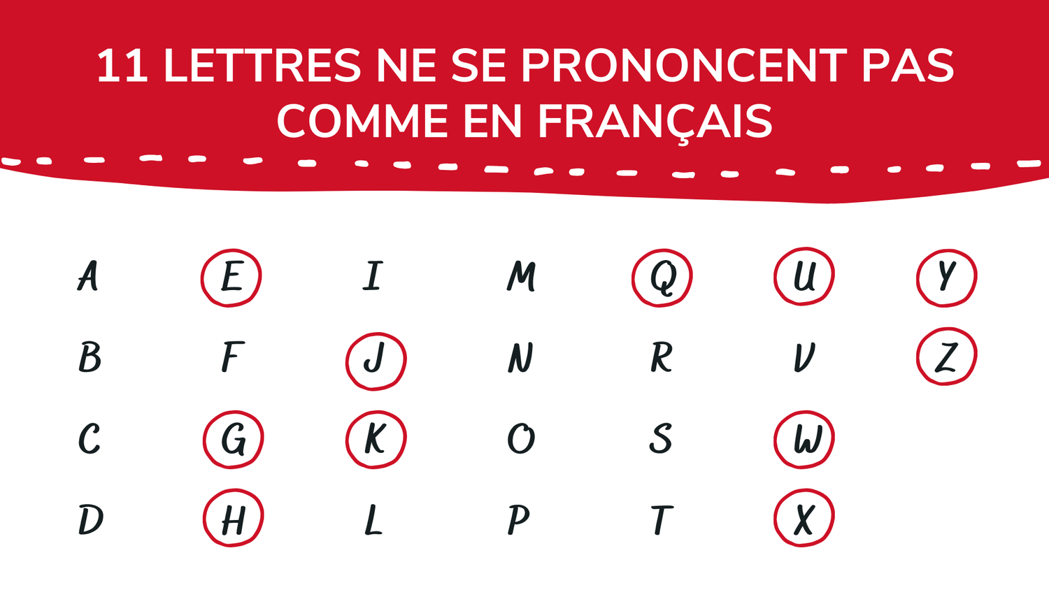 🎧 Écoutez les spécificités de l’alphabet par rapport au français et répétez chaque lettre :