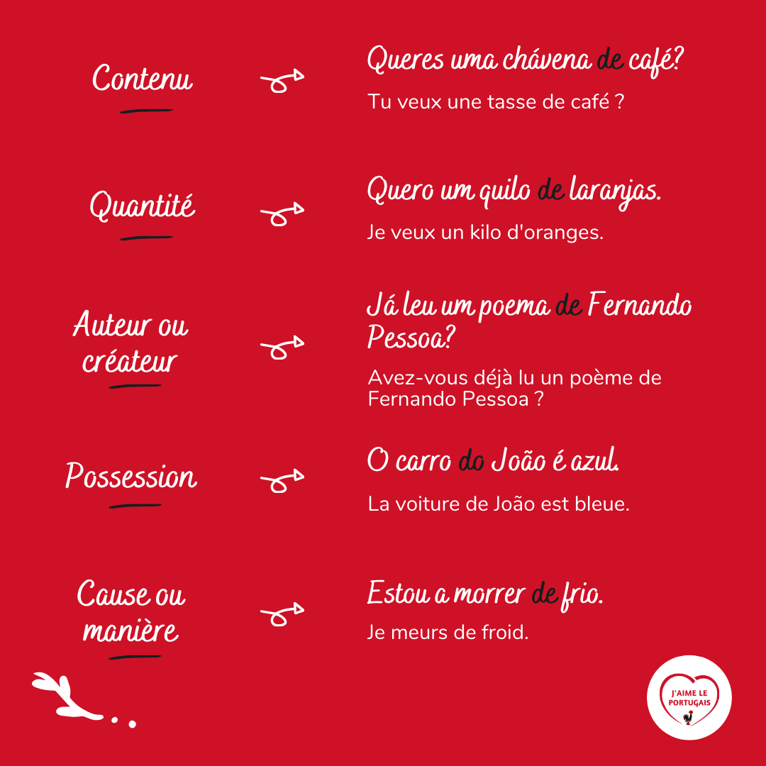 […] Pour en savoir plus, consultez la leçon sur La préposition DE en portugais […]