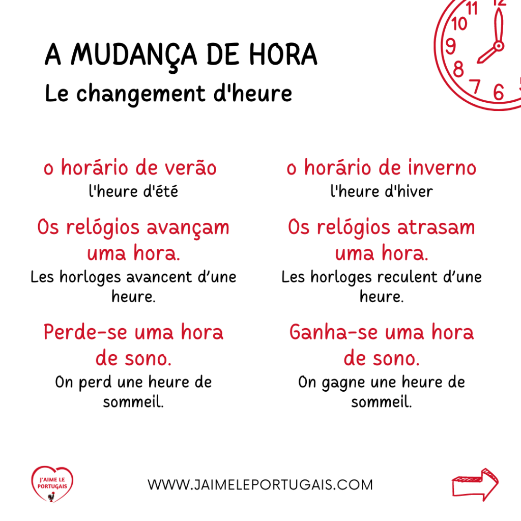 - os relógios atrasam uma hora : les horloges reculent d’une heure