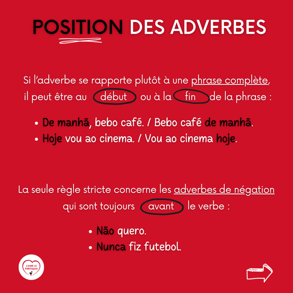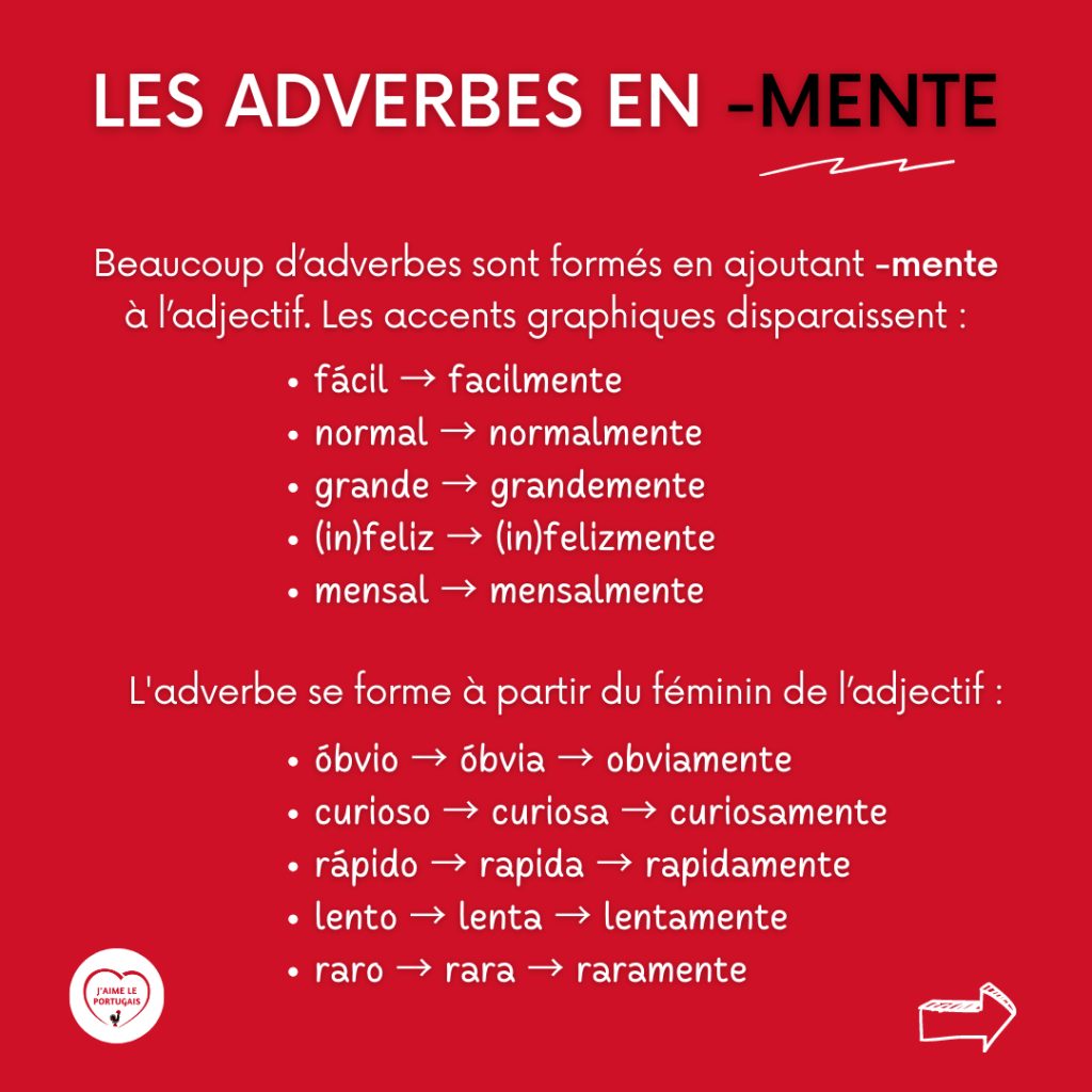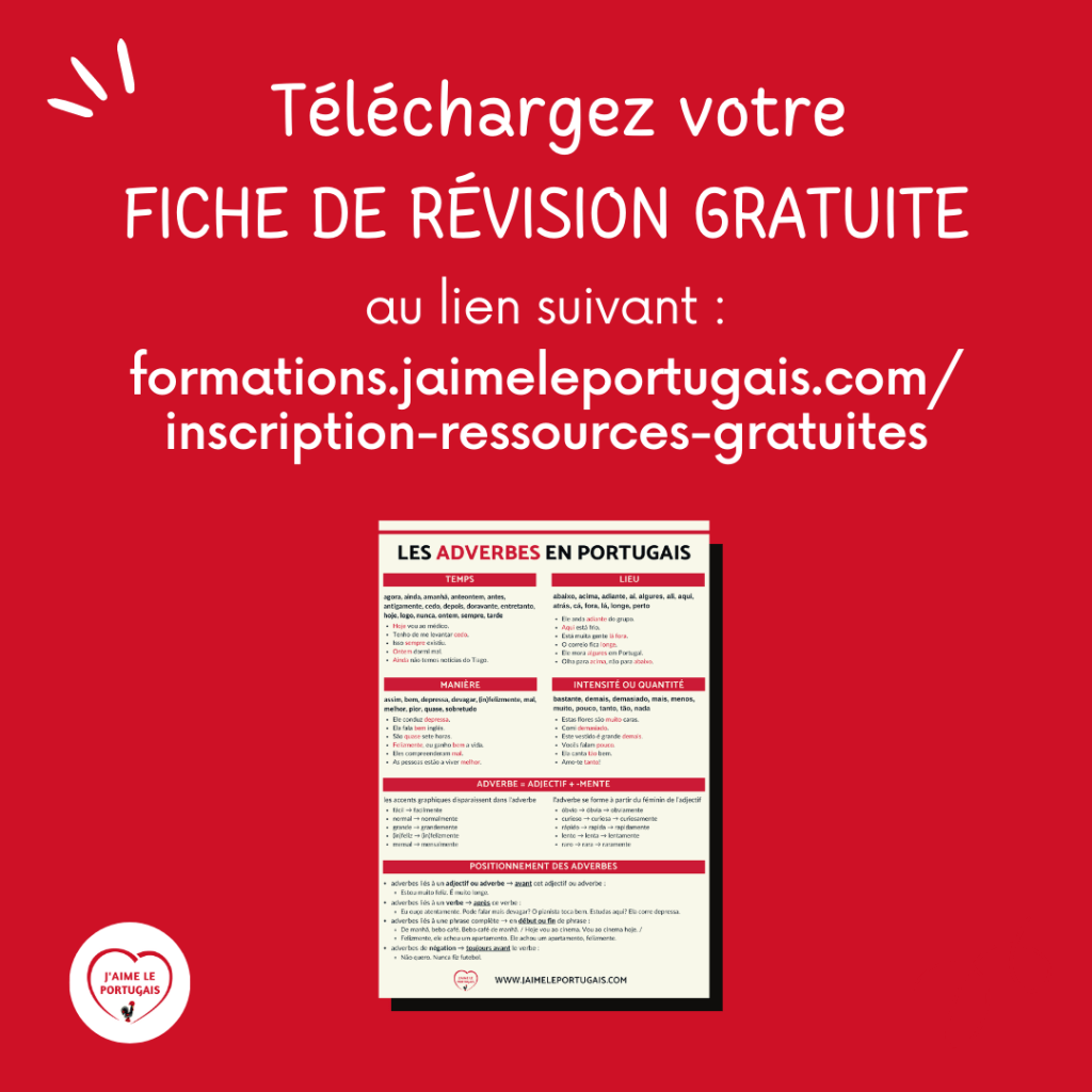 - Puis rendez-vous dans la section « Fiches mémo » pour retrouver aussitôt votre fiche mémo #35 – Les adverbes en portugais.