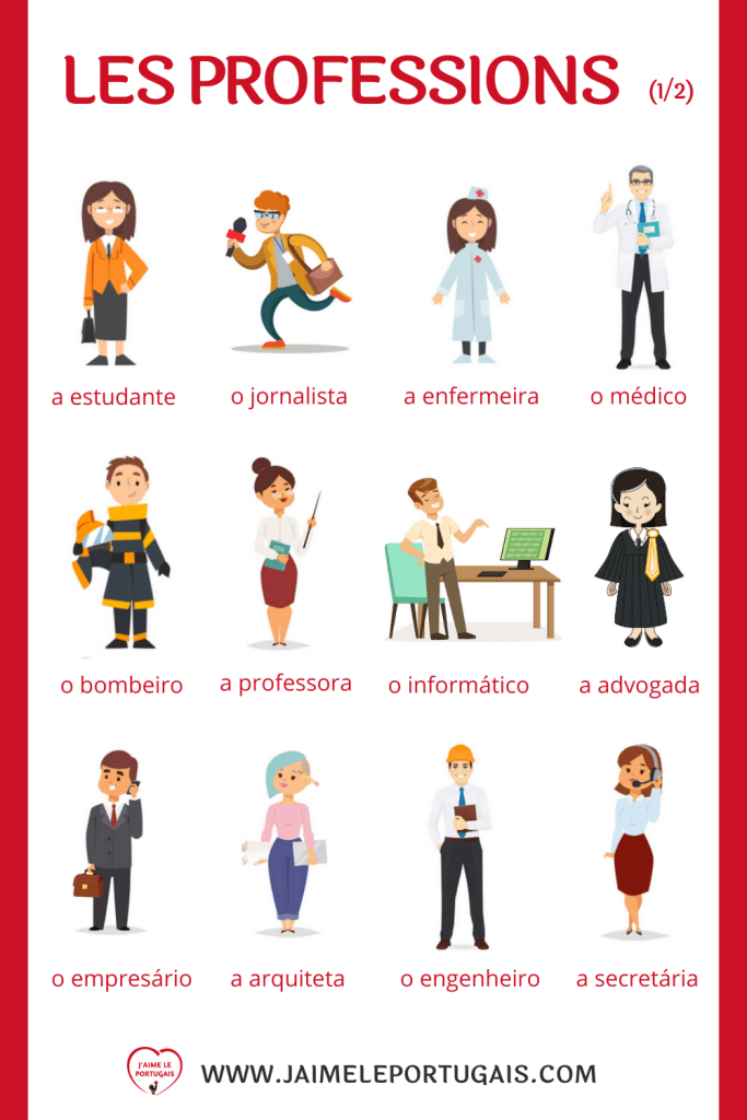 Dans cette leçon, vous allez apprendre le vocabulaire portugais de 24 professions, avec leur masculin et féminin et leur prononciation en portugais européen grâce aux audios.